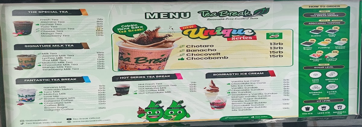 Tea Break Unimas Distrik is a cozy coffee shop nestled on Jl. Raya Waru in Sidoarjo, offering a warm retreat for tea and coffee lovers. Known for its friendly and attentive staff, this spot invites you to enjoy a relaxed atmosphere despite occasional challenges like room temperature. The menu highlights a variety of signature drinks, with the taro milk gaining particular praise for its rich and comforting flavor, a favorite among regular patrons. While some customers note the service can be slow at times, the quality of the drinks consistently leaves a lasting impression. Promotions add extra value, making it an appealing destination for those seeking both taste and affordability. Whether you’re after a quick refreshment or a casual hangout, Tea Break Unimas Distrik blends great beverages with genuine hospitality, making each visit worthwhile.